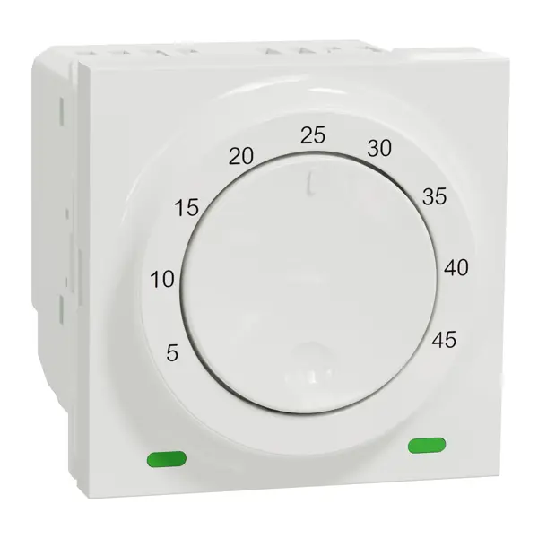 Schneider Electric Nová Unica podlahový termostat NU350318 je mechanismus v bílé barvě. Připojovací svorky tohoto podlahového termostatu jsou šroubové. Způsob upevnění je nacvaknutí. Kromě toho je na povrchu označení L+N, OUT, senzor. Má šířku 45 mm, výšku 45 mm, hloubku 47 mm a hloubku zapuštění 33 mm, Její odpovídající montážní krabice může být zapuštěna do povrchu stěny s montáží pod omítku. Podlahový termostat je vyroben z PC (polykarbonátu) GF10 FR, kovu, termoplastu stabilizovaného ABS-UV, takže je co nejodolnější. Kromě toho dosahuje úrovně ochrany IK01, která může pomoci chránit před nárazy. Dosahuje také stupně ochrany IP20. Také je šetrné k životnímu prostředí, přičemž je odolné vůči UV záření, acetonu, alkoholu, čpavku, bělidlu, tekutému mýdlu, oleji, benzínu, kapalině na čištění oken. Pro regulaci teploty je jmenovité provozní napětí 230 V. Navíc splňuje normu směrnice EMC, EN 607320-2-9, směrnice NN. Kromě toho neobsahuje halogeny, což je prospěšné pro vaše zdraví. A typ ovládání tohoto podlahového termostatu je elektronický regulátor. Teplota zobrazovaná na podlahovém termostatu je velice přesná, s přesností měření 0,5 °C.